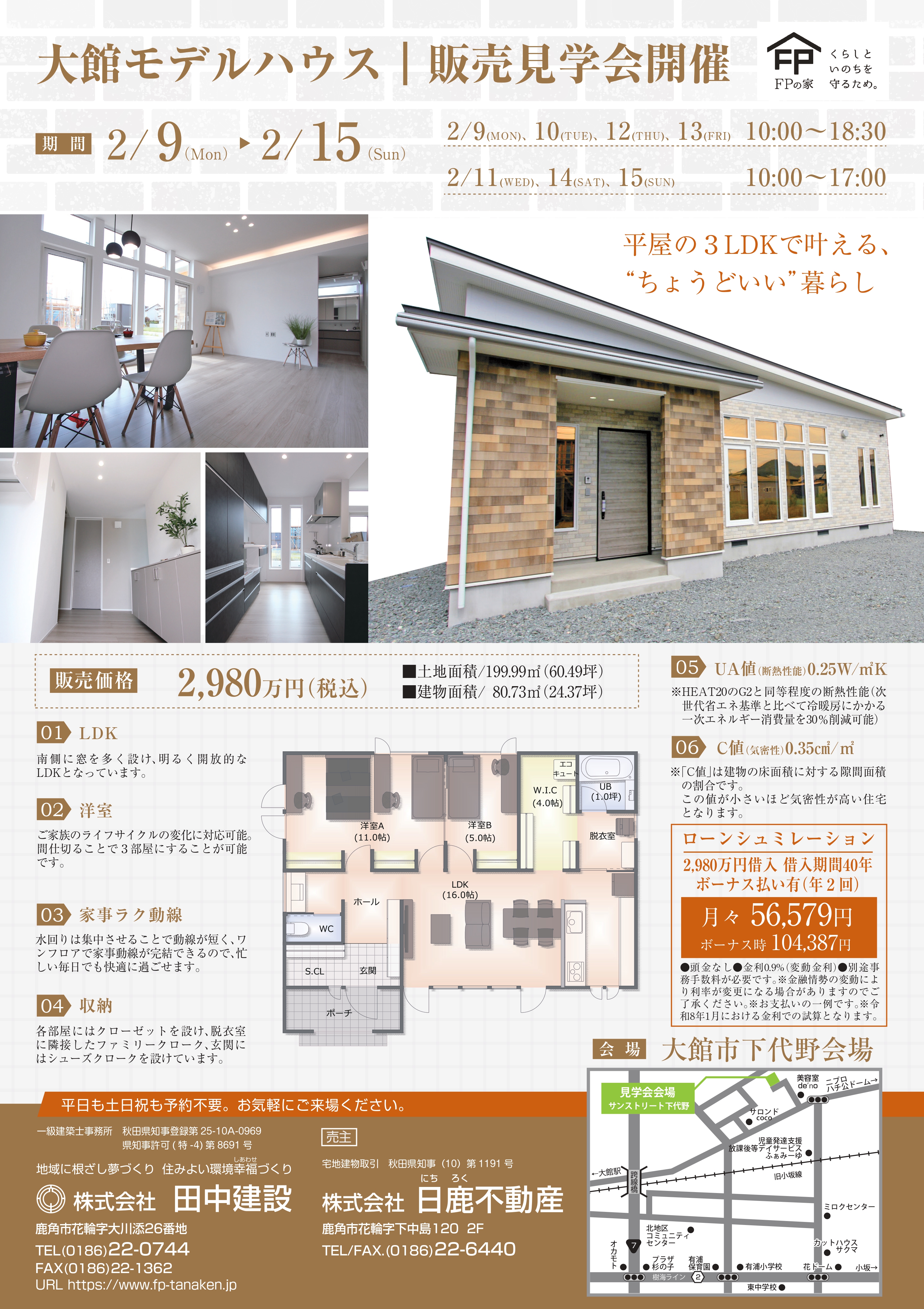 2/9(月)〜2/15(日)に大館モデルハウス見学会を開催いたします。