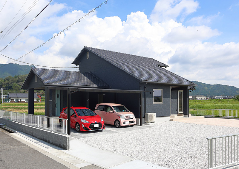 生活音や外からの視線を気にせずに暮らせる住まい。車が2台停められるカーポートは、雨の日でも濡れずに勝手口から荷物を運び込めて便利。カーポートではバーベキューを楽しむこともあります。